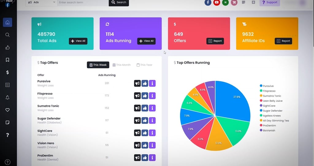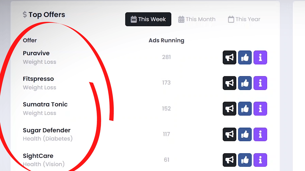 On this software, you can see almost immediately which products are the most popular among other affiliates based on the number of ads that have been found on Facebook…